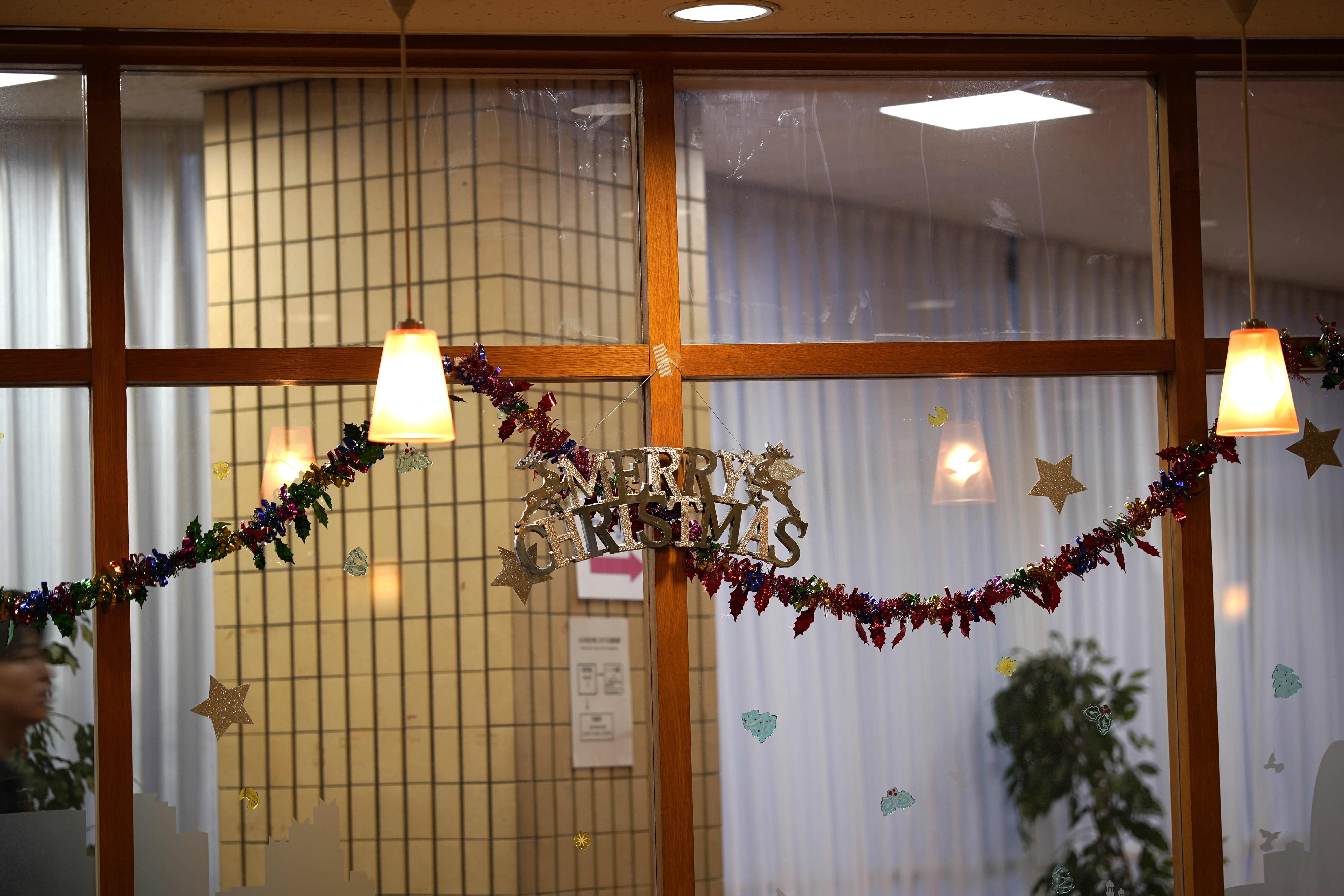 今年はクリスマスにちなんだアイテムの着用がドレスコードになっており、クリスマスカラーの服やトナカイのカチューシャなどを身につけた参加者40名余が集まりました。今回も去年同様イベント係の学生が主体となり、ゲームの企画・準備や当日の進行を担当してくれました。