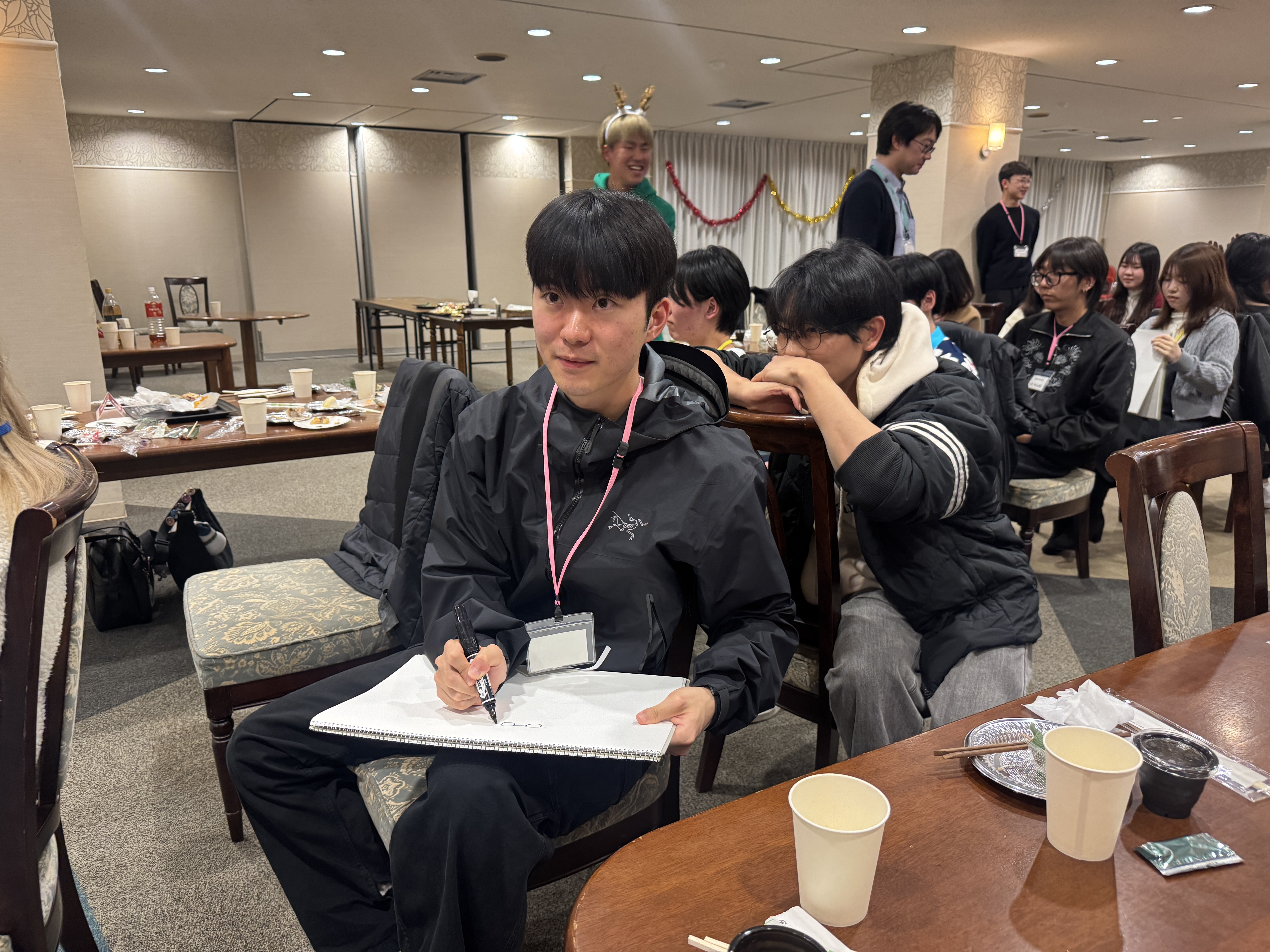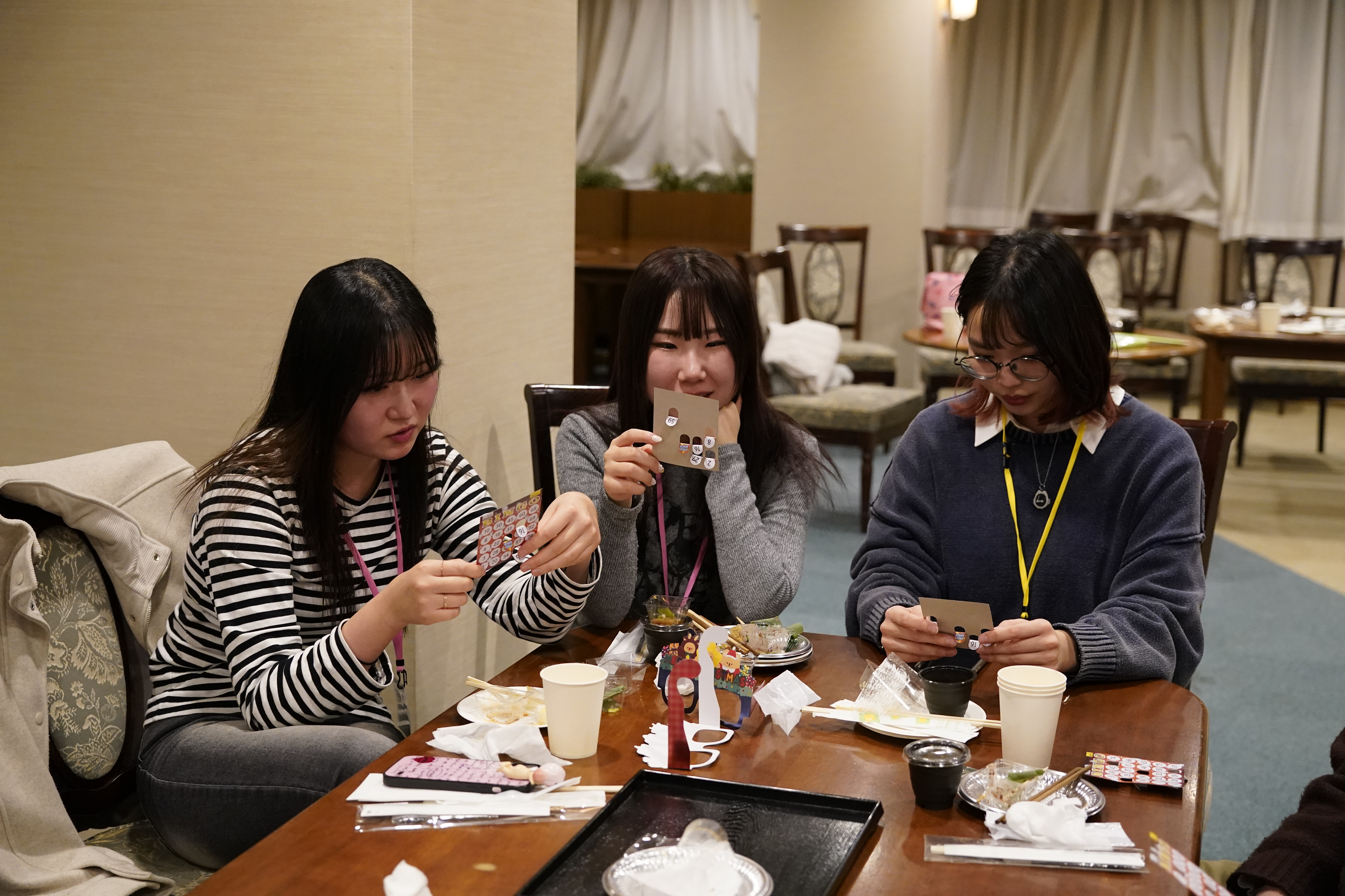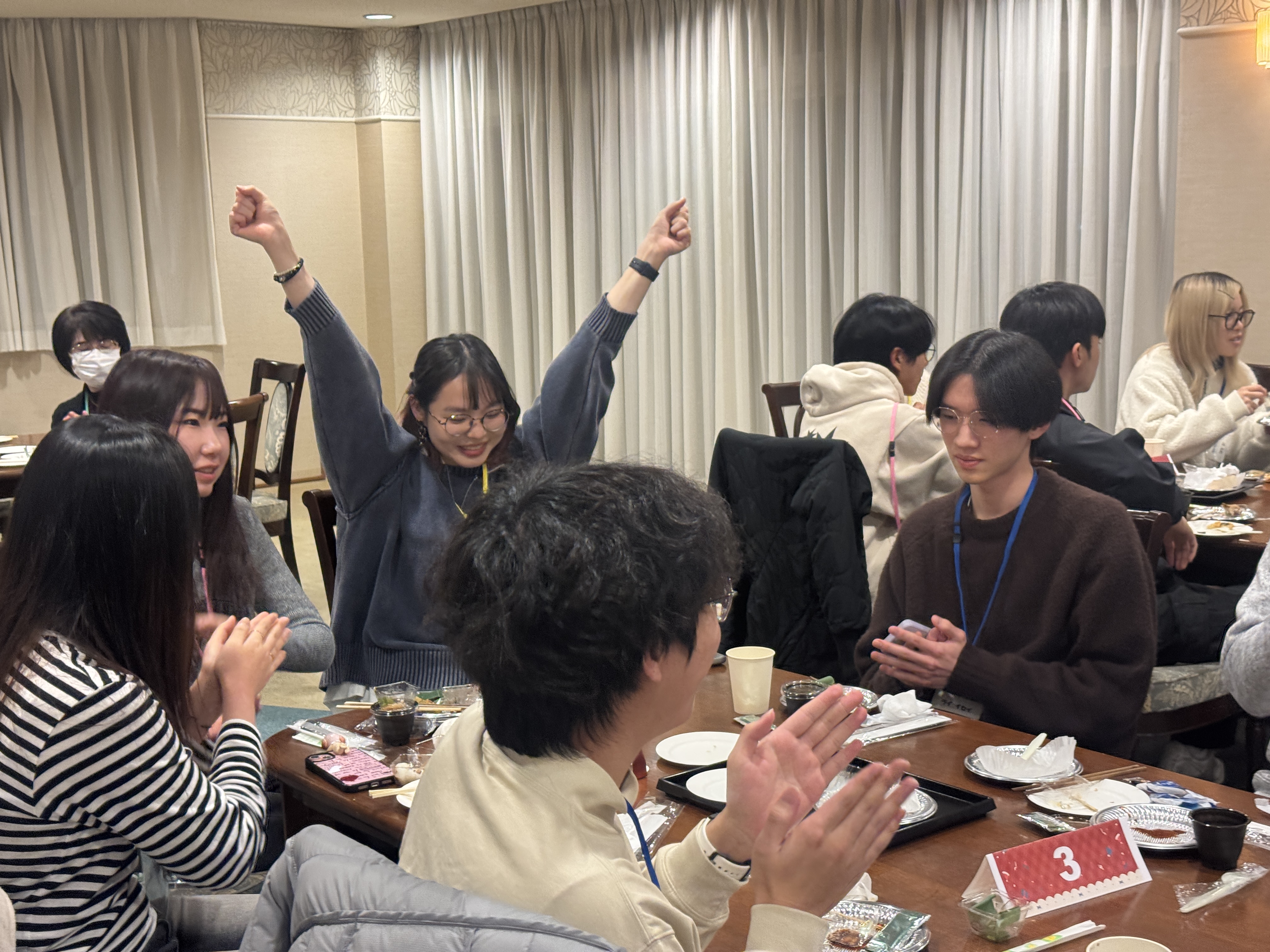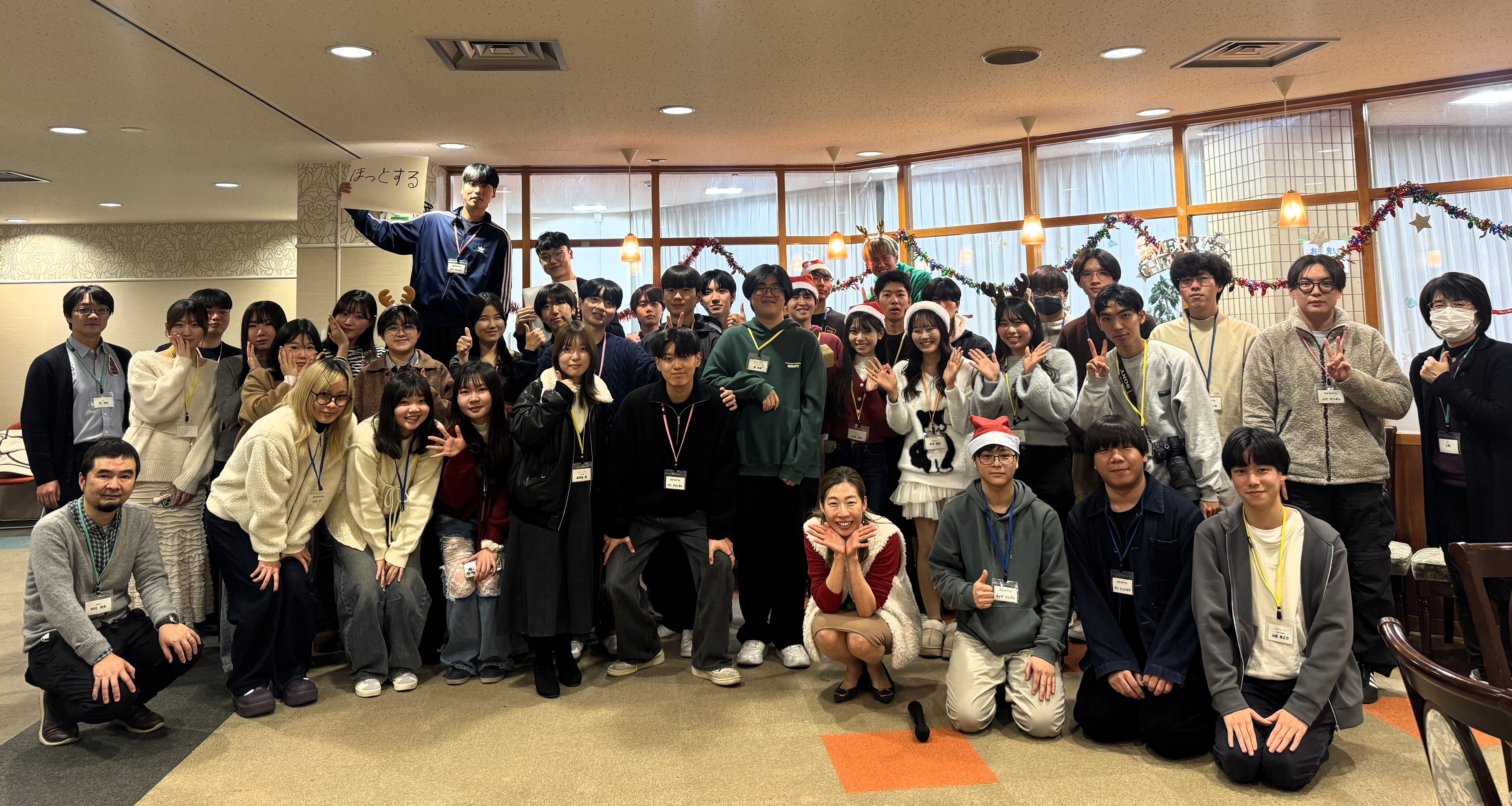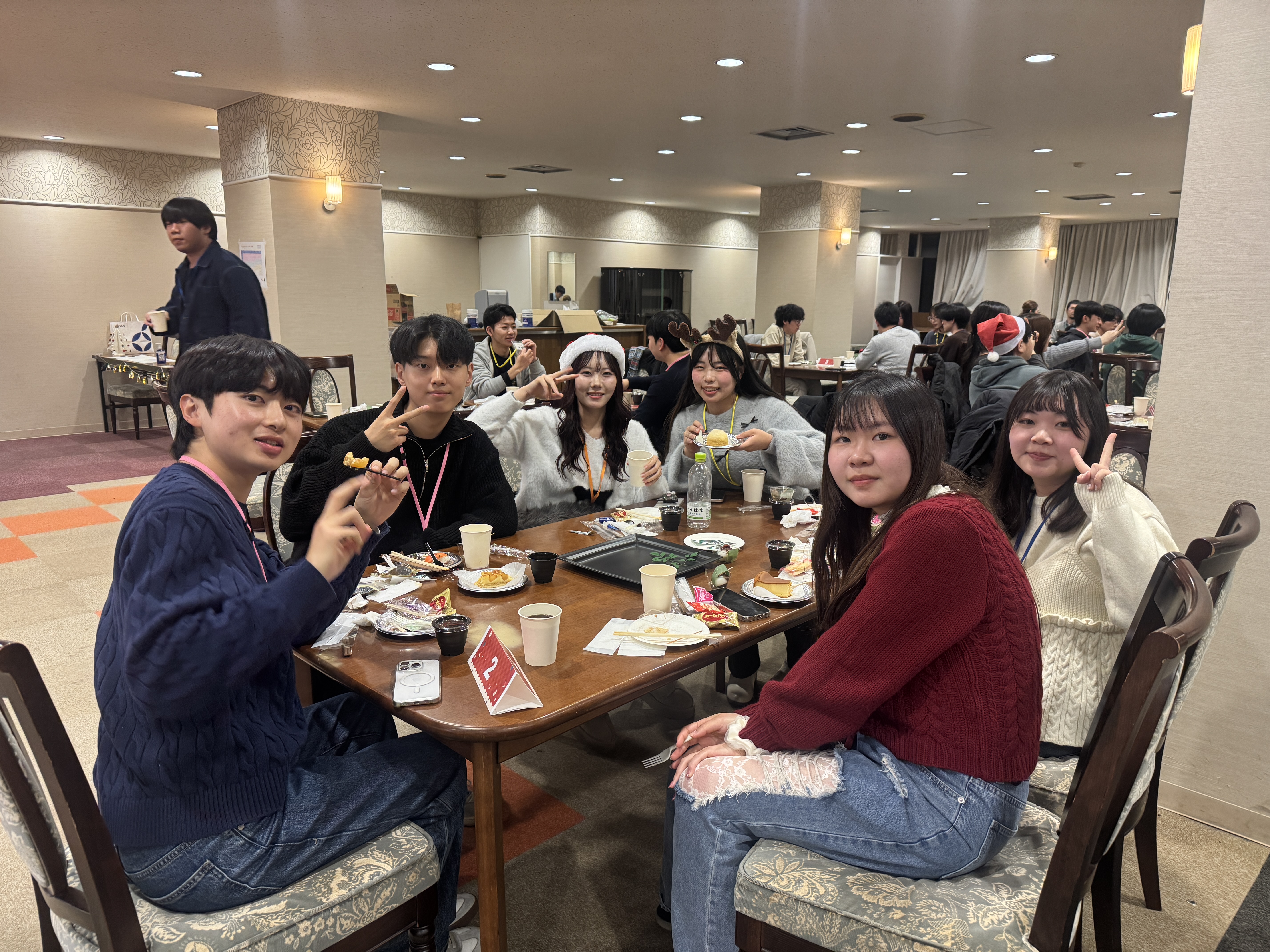 終盤のビンゴゲームでは、YNUグッズなどの賞品が用意され、受け取った学生たちの嬉しそうな表情が印象的でした。時間はあっという間に過ぎ、最後に記念撮影をして終了となりました。今年の締めくくりに相応しい、賑やかなパーティーとなりました。イベント係の皆さん、本当にありがとうございました!