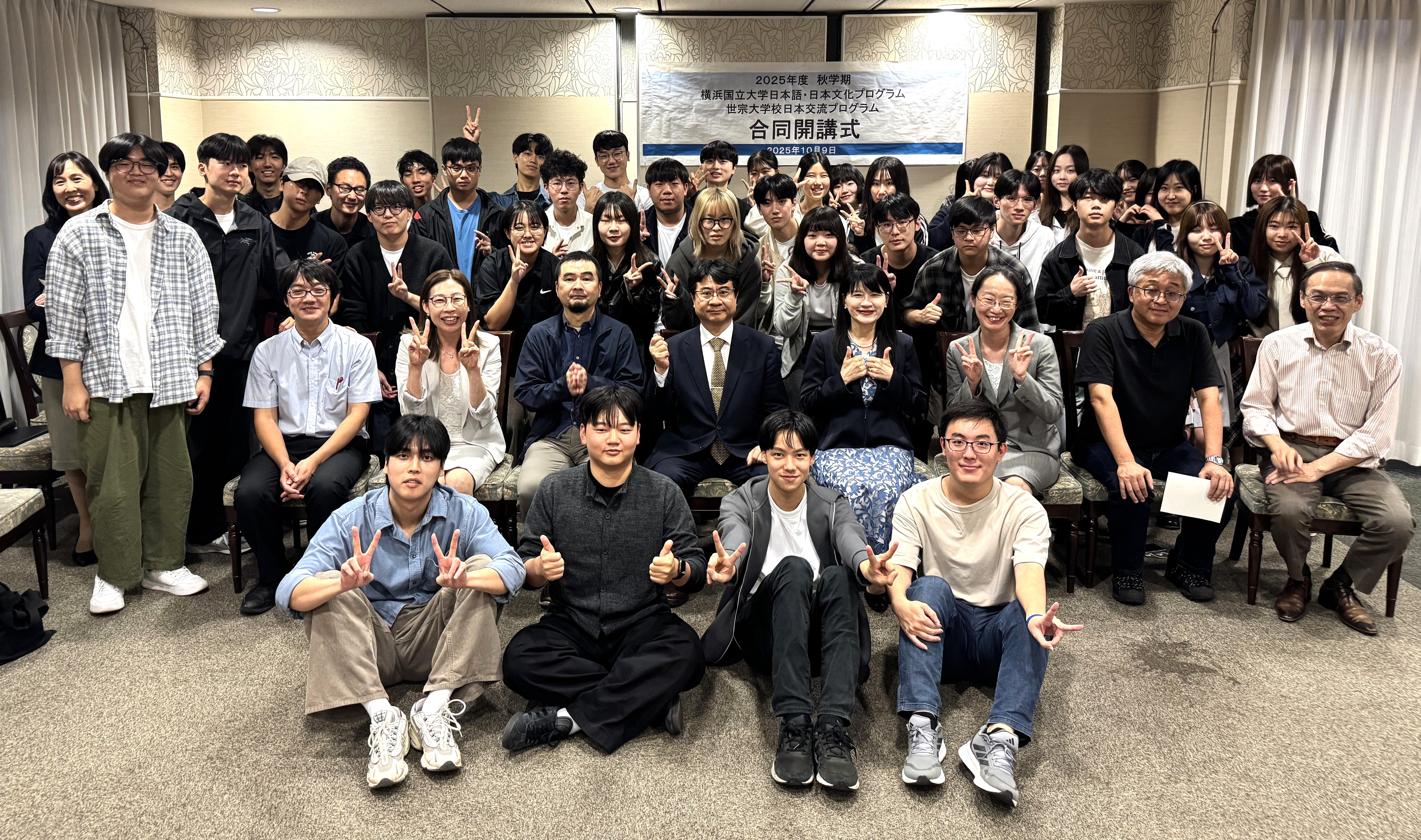 2025年10月9日(木)、横浜国立大学日本語・日本文化プログラム(以下、日日プログラム)、世宗大学校日本交流プログラム(以下、世宗プログラム)の合同開講式が大学会館にて行われました。