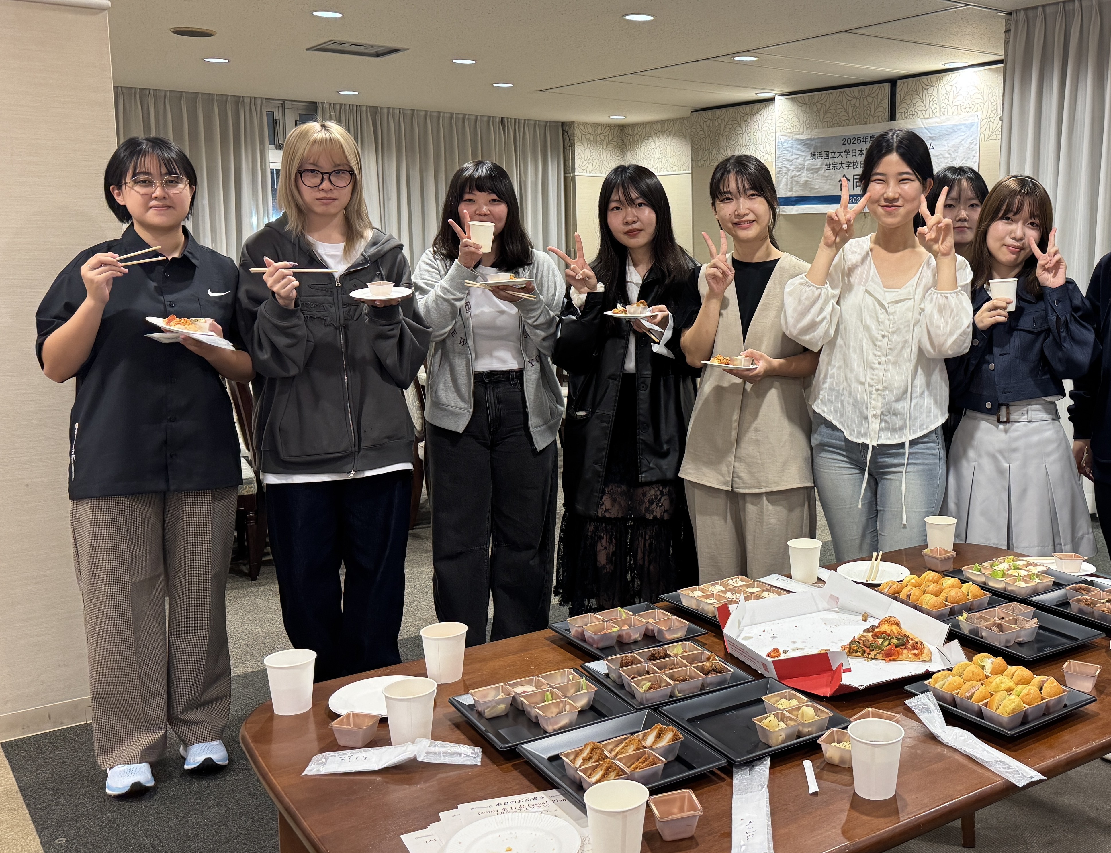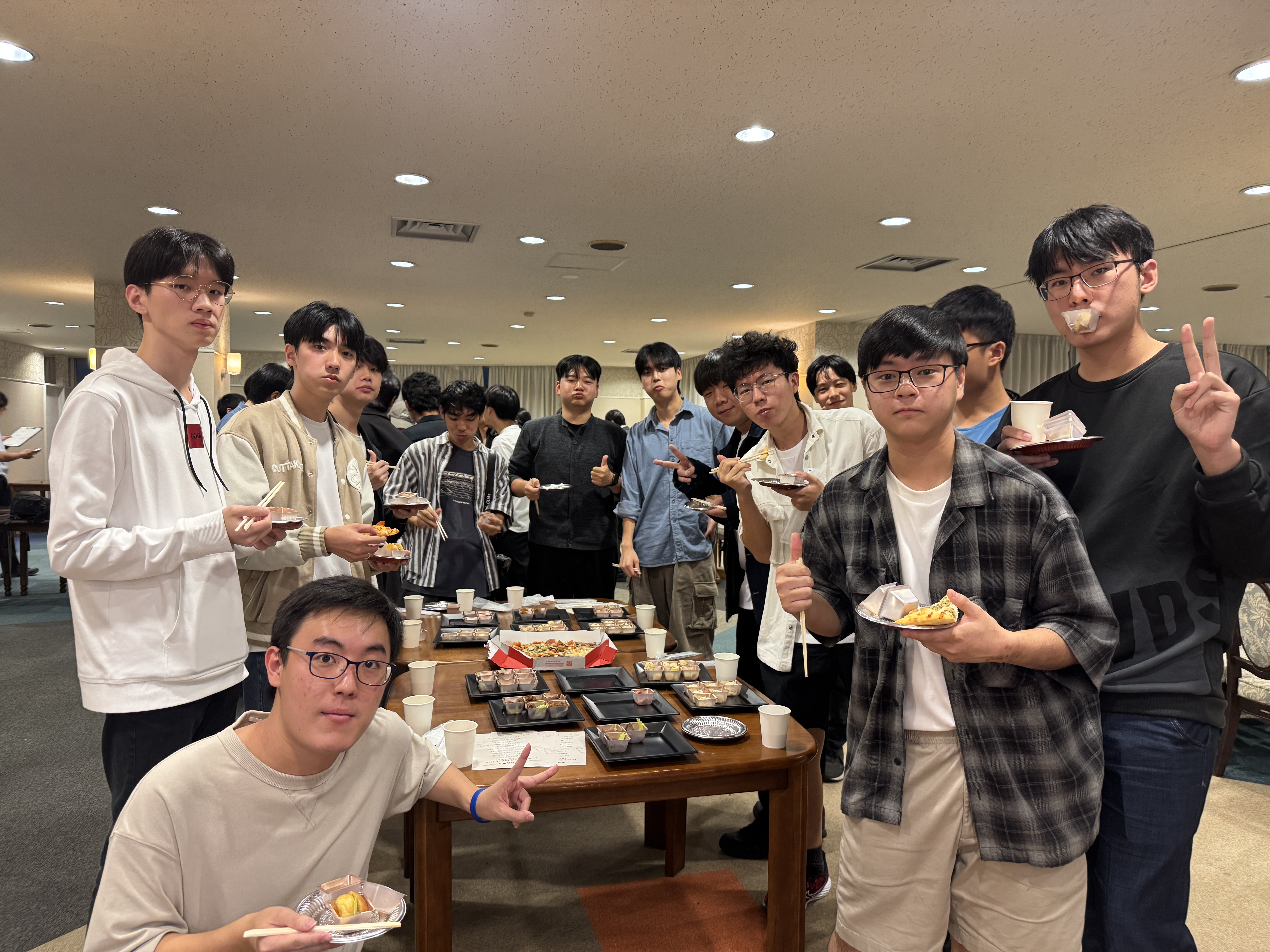 教職員からの挨拶や記念写真の撮影の後、オードブルやピザを囲んでの歓談の時間となりました。初めは少し硬い表情だった日日プログラム生たちも、チューターや世宗生たちと交流しているうちに緊張が解けた様子でした。