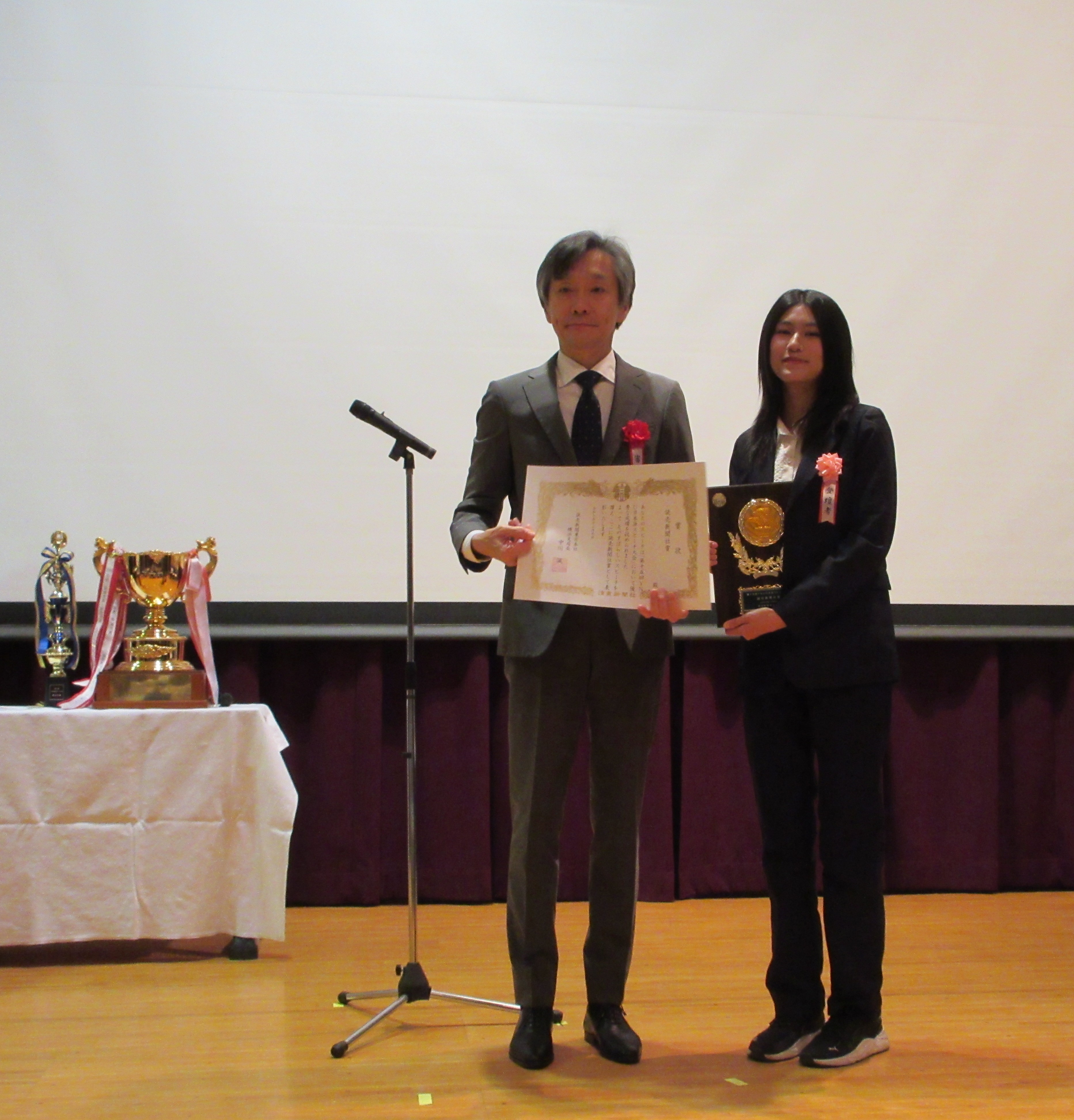 このスピーチ大会に出ることは、私にとって大きなチャレンジでしたが、日本語で自分の気持ちを伝えられて、とてもうれしかったです。発表の前はとても緊張していました。しかも一番目だったので、ドキドキが止まりませんでした。でも、話し始めたら、会場のあたたかい雰囲気のおかげで、少しずつリラックスできて、発表を楽しむことができました。そして、読売新聞社賞までいただけて、本当にびっくりするほど光栄です。練習を手伝ってくれたサポーターに、本当に感謝しています。これからも日本語の勉強をがんばって、もっと上手に話せるようになりたいです。ありがとうございました!